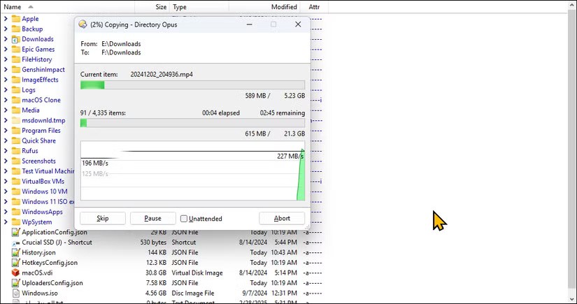 Caixa de diálogo de transferência de arquivos no Opus Directory no Windows 11