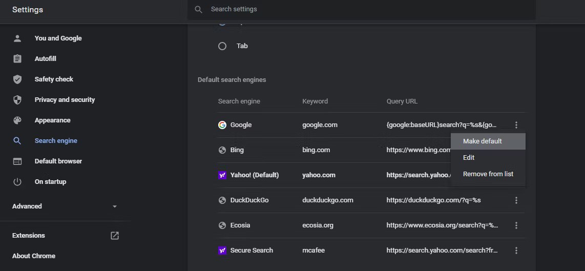 O Chrome permite que os usuários utilizem diferentes mecanismos de busca, com opções padrões incluindo Bing, DuckDuckGo, Yandex e Yahoo. Primeiro, verifique qual mecanismo de busca seu navegador está usando como padrão. Se for o Yahoo, você pode alterar o mecanismo de busca padrão do Chrome e retornar ao Google.